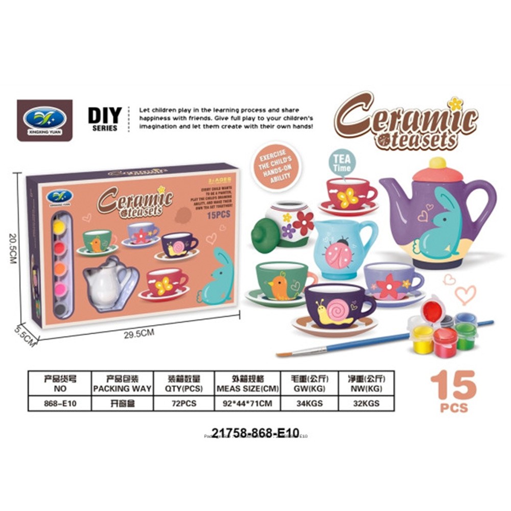 Комплектация: молочник - 1 шт., кофейник - 1 шт., крышка - 2 шт., чашка - 4 шт., блюдце - 4 шт., сахарница - 1 шт., кисть - 1 шт., краски - 6 шт.