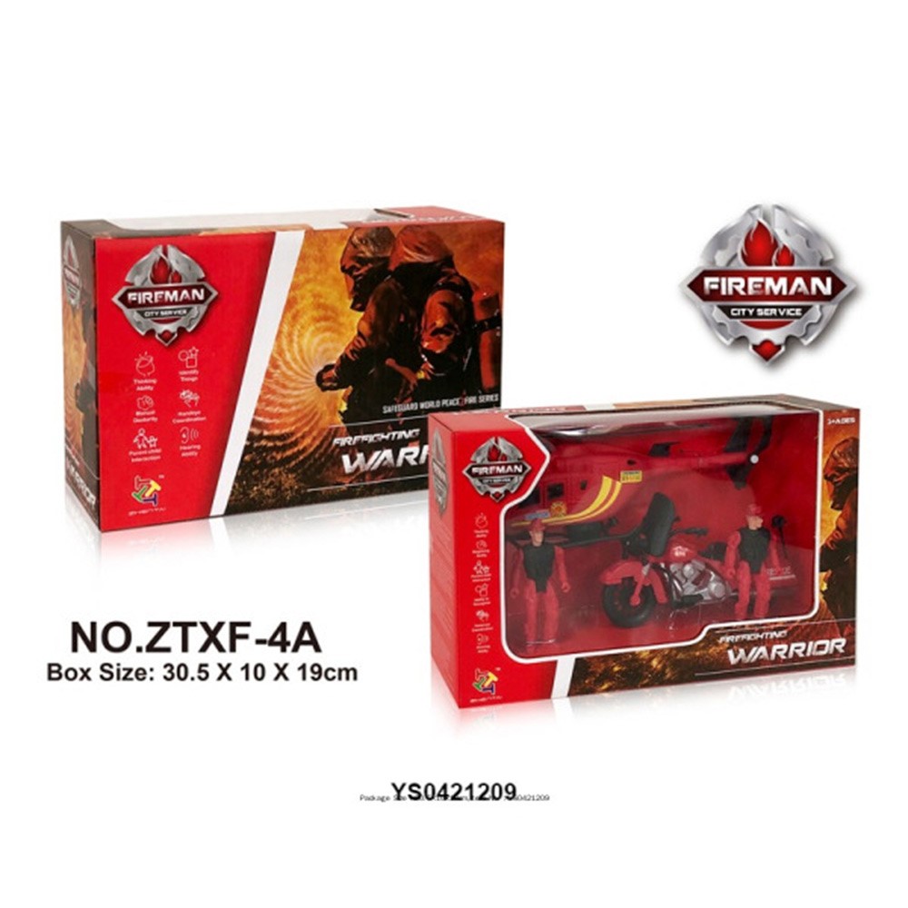 Комплектация: фигурки пожарного - 2 шт, вертолет - 1 шт, мотоцикл - 1 шт