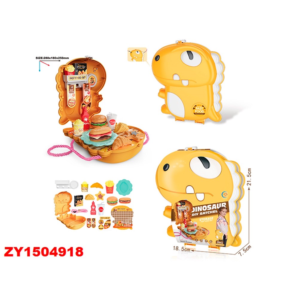 Комплектация: чемодан - 1 шт., шнур - 1 шт., полка - 1 шт., картонный вкладыш - 1 шт., поп-корн - 1 шт., круассан - 1 шт., картофель-фри - 1 шт., тарелка - 1 шт., вафля - 1 шт., коробка - 1 шт., печенье - 1 шт., стакан - 1 шт., кетчуп - 1 шт., бургер - 2 шт., наклейка - 6 шт.