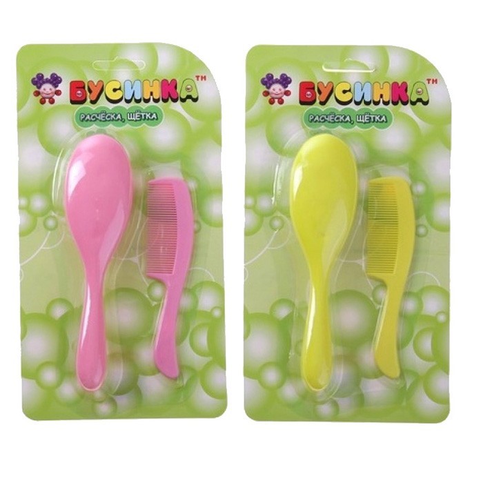 Набор состоит из прямой расчески и щетки для волос. Он предназначен для малышей с рождения. Мягко и бережно расчесывает волосы и массирует кожу головы. Расчески обеспечат качественный, простой и безопасный уход за волосами малыша. Гребешок с частыми зубчиками хорошо удаляет (при необходимости) себорейные корочки. Зубчики гребешка имеют на концах шарики, чтобы не нанести повреждения на кожу головы ребенка. Щетинки щетки мягкие и приятные на ощупь.