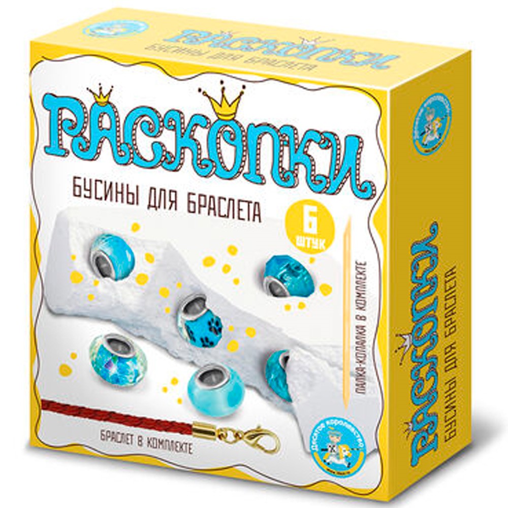 Набор Раскопки "Бусины для браслета" 6 бусин-шармов голубой 05163