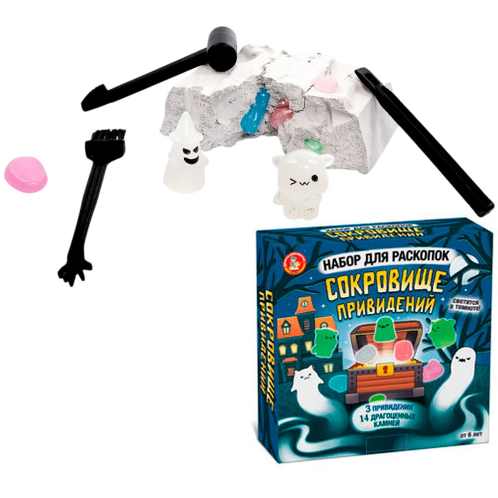 Набор Раскопки Сокровище привидений 3 привидения, 14 камней, светятся в темноте 05535