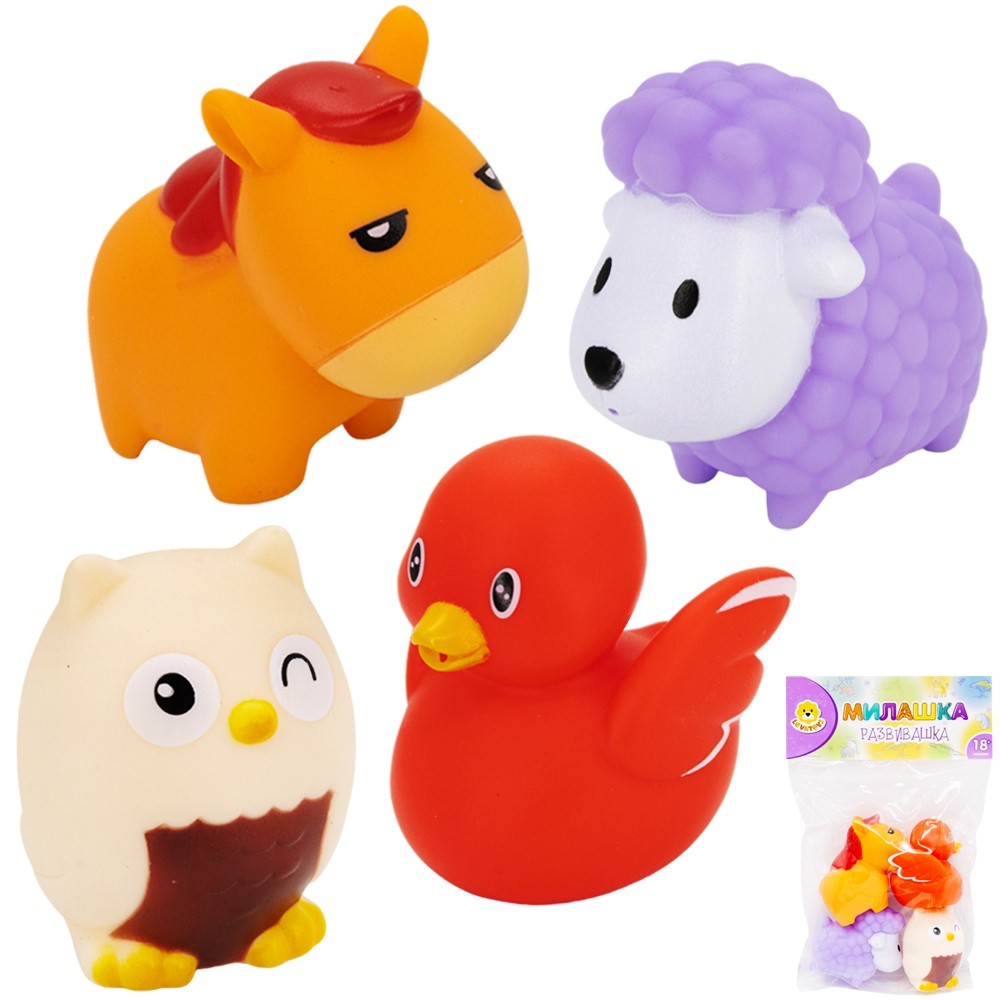 Комплектация: 4 резиновые фигурки (сова, барашек, утка, лошадка)