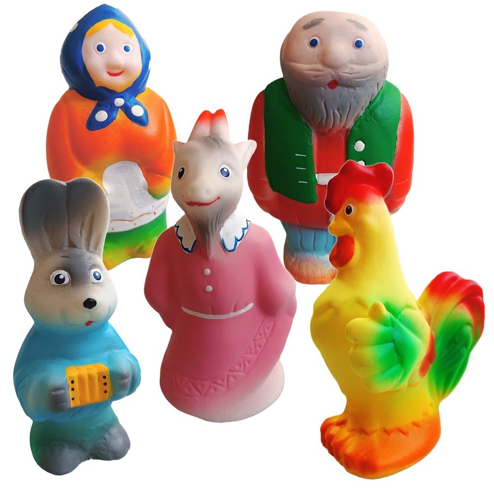 Набор из 5 игрушек по мотивам русской народной сказки. Они ярко раскрашены, приятны на ощупь и удобно лежат в руке ребенка. Несомненно, с ними будет весело играть, выдумывая сказки и приключения, используя набор целиком или игрушки по отдельности. Важно, что игрушки изготовлены из пластизоли - безопасного нетоксичного материала, который со временем не теряет своего первоначального вида и свойств.