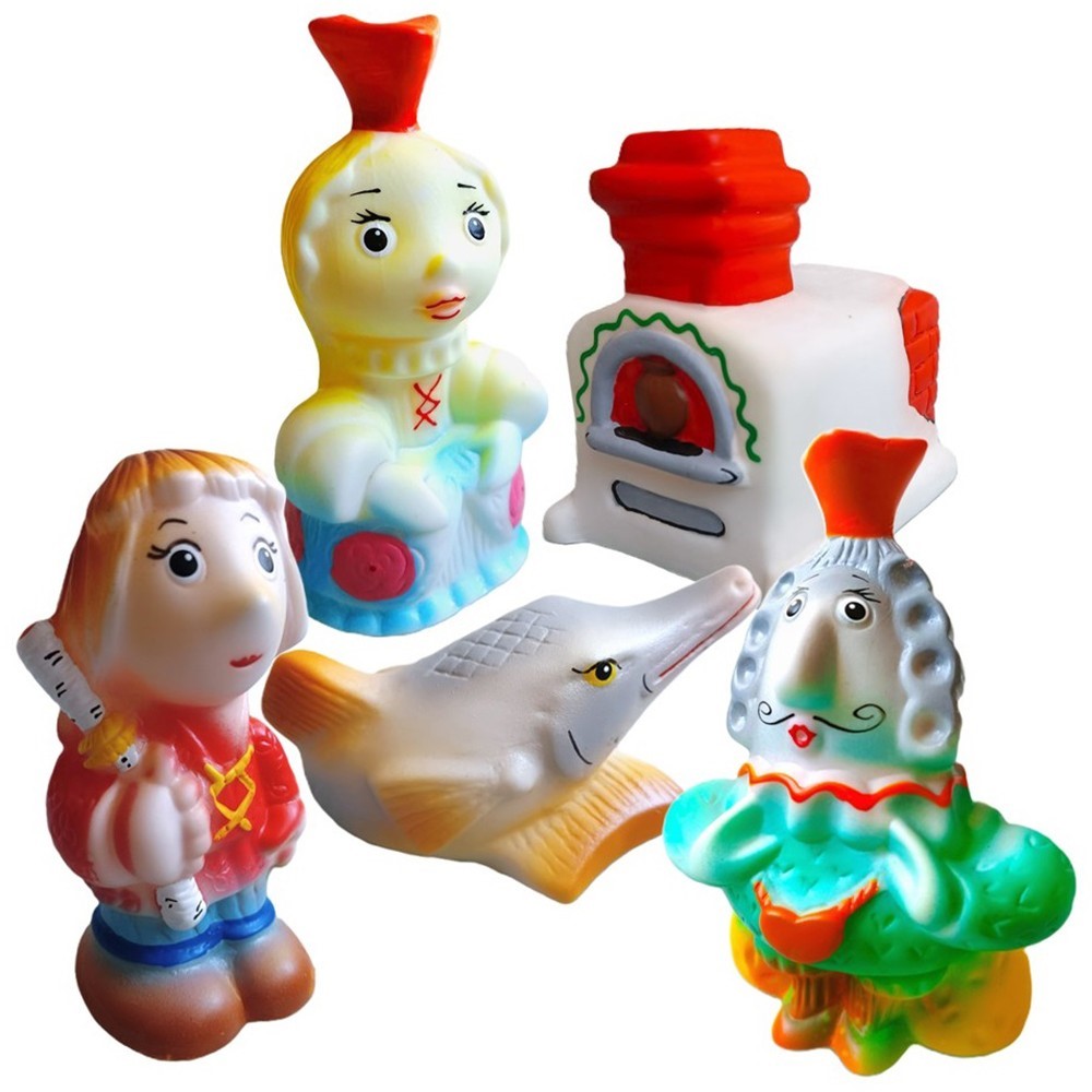 Набор резиновых игрушек “По щучьему велению” состоит из пяти фигурок - Емели, Царя, Принцессы, Щуки и печки, на которой катался Емеля. С фигурками малыш сможет устраивать настоящее кукольное представление, воспроизводя сказочный сюжет или придумывая собственные истории. Такое занятие поможет ребенку в развитии речи, актерского мастерства и фантазии. Игрушки изготовлены из качественных нетоксичных материалов, окрашены стойкими безопасными красителями.