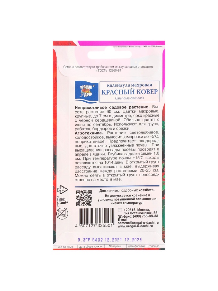 Набор семян Календула махровая "Красный ковёр", 5 шт.