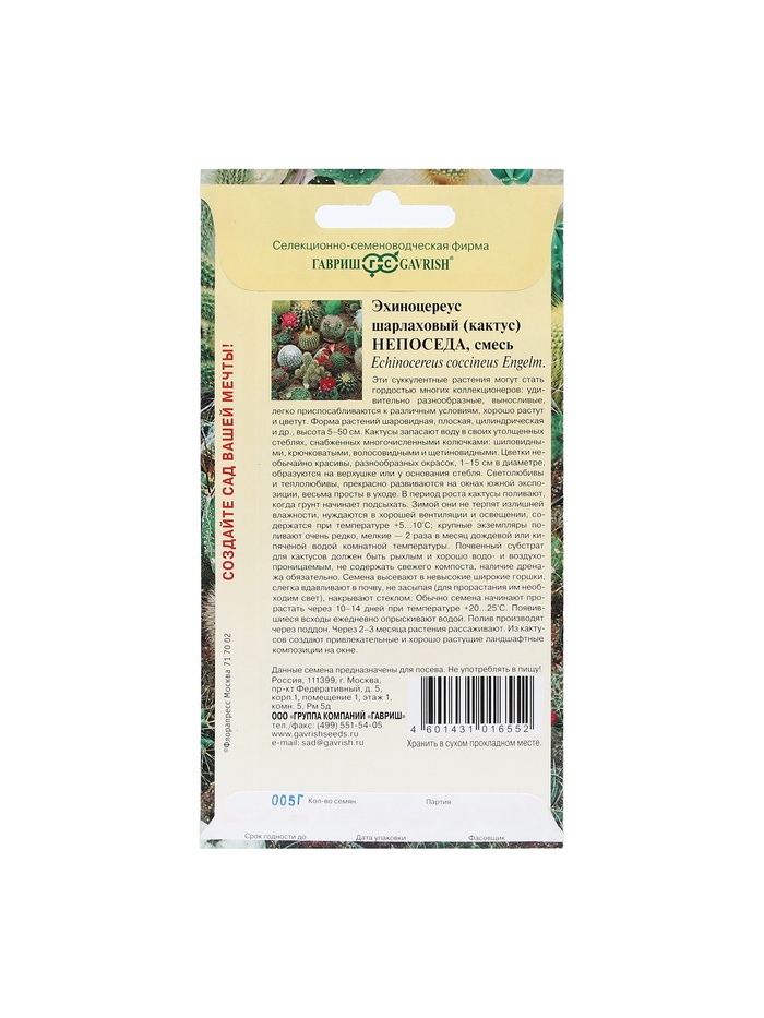 Набор семян комнатных Кактус "Непоседа", 5 шт.