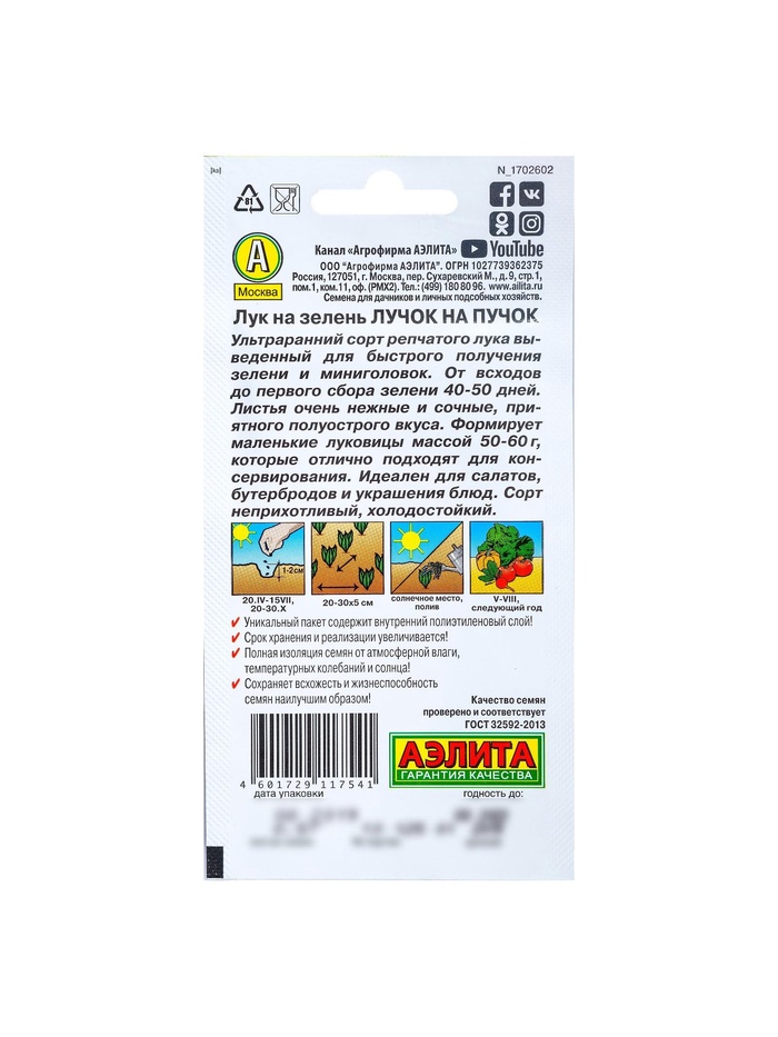 Набор семян Лук на зелень "Лучок на пучок", 5 шт.