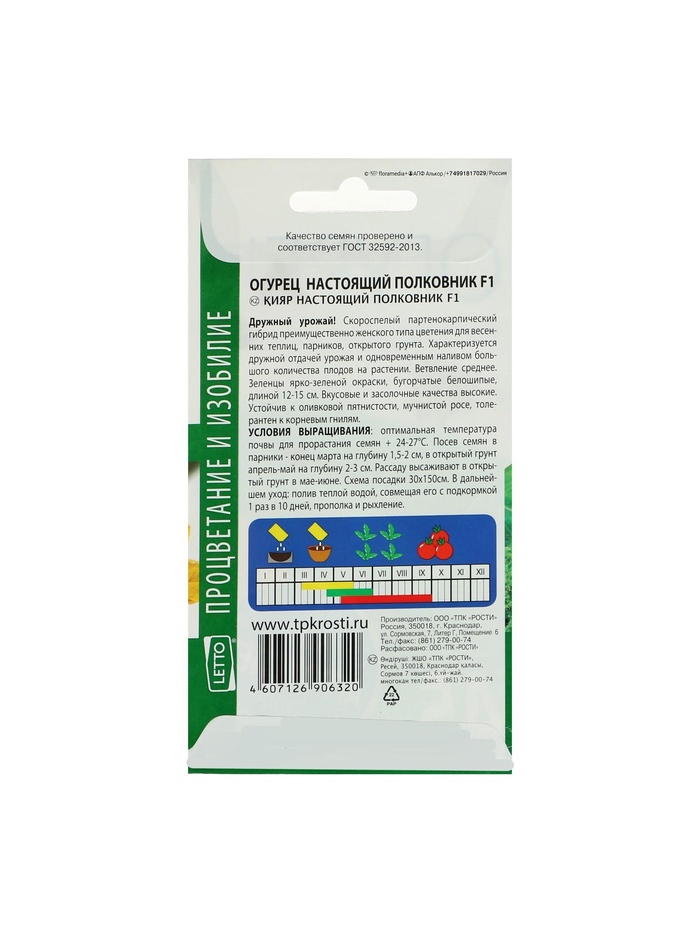 Набор семян Огурец Настоящий полковник F1, ранний, партенокарпический, 5 шт.