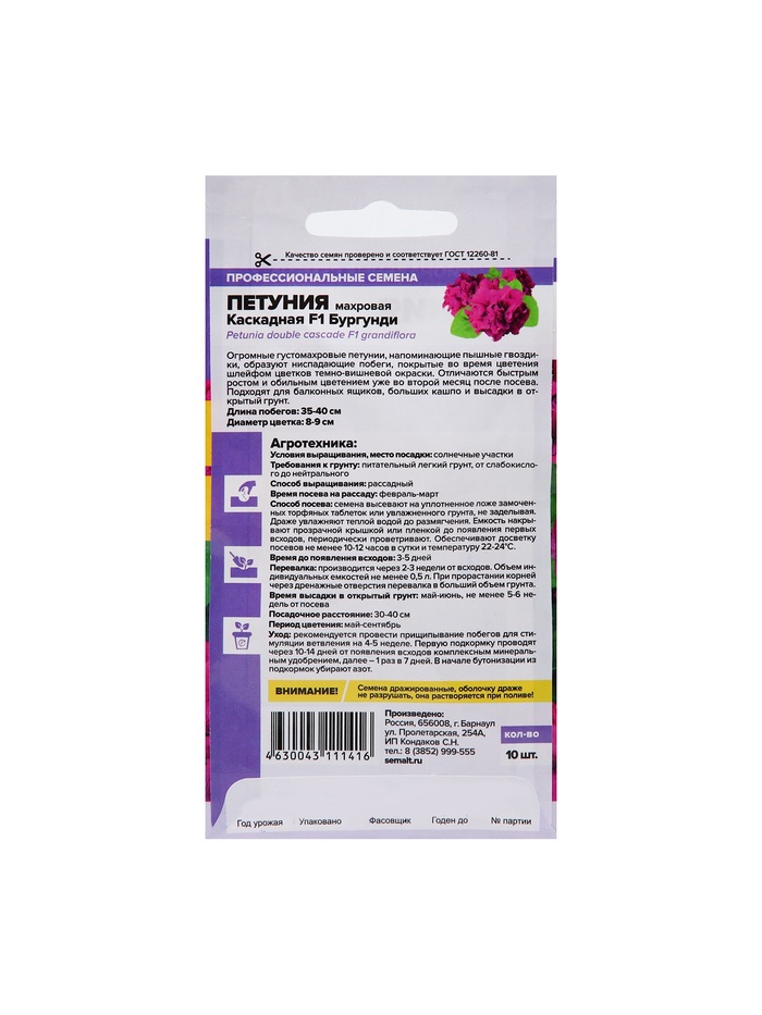 Набор семян Петуния "Бургунди Каскадная" махровая F1, О, , 3 шт.
