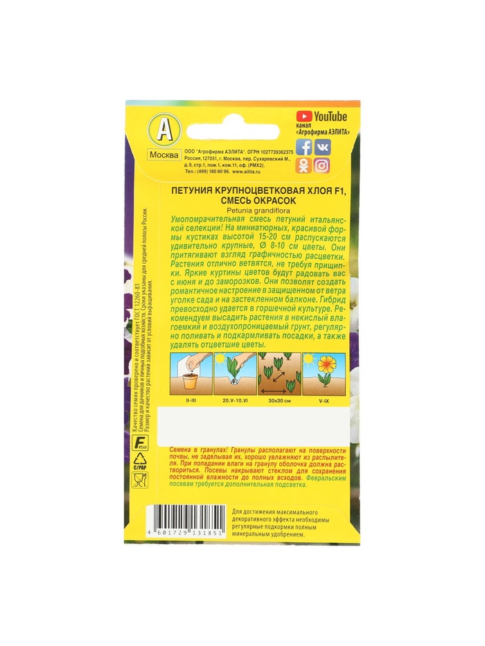 Набор семян Петуния "Хлоя", F1, крупноцветковая, смесь окрасок,, 5 шт.