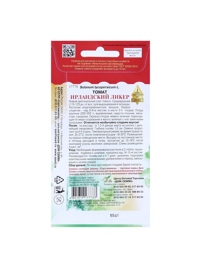 Набор семян Томат "Ирландский ликёр" Дом семян, среднеранний, 5 шт.