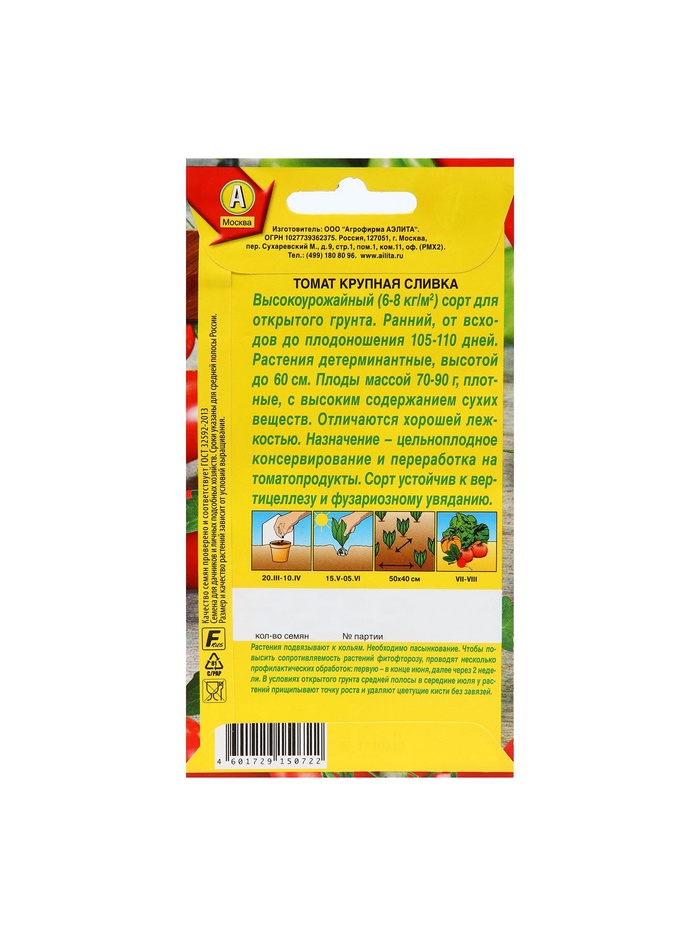 Набор семян Томат Крупная сливка, детерминантный, 5 шт.