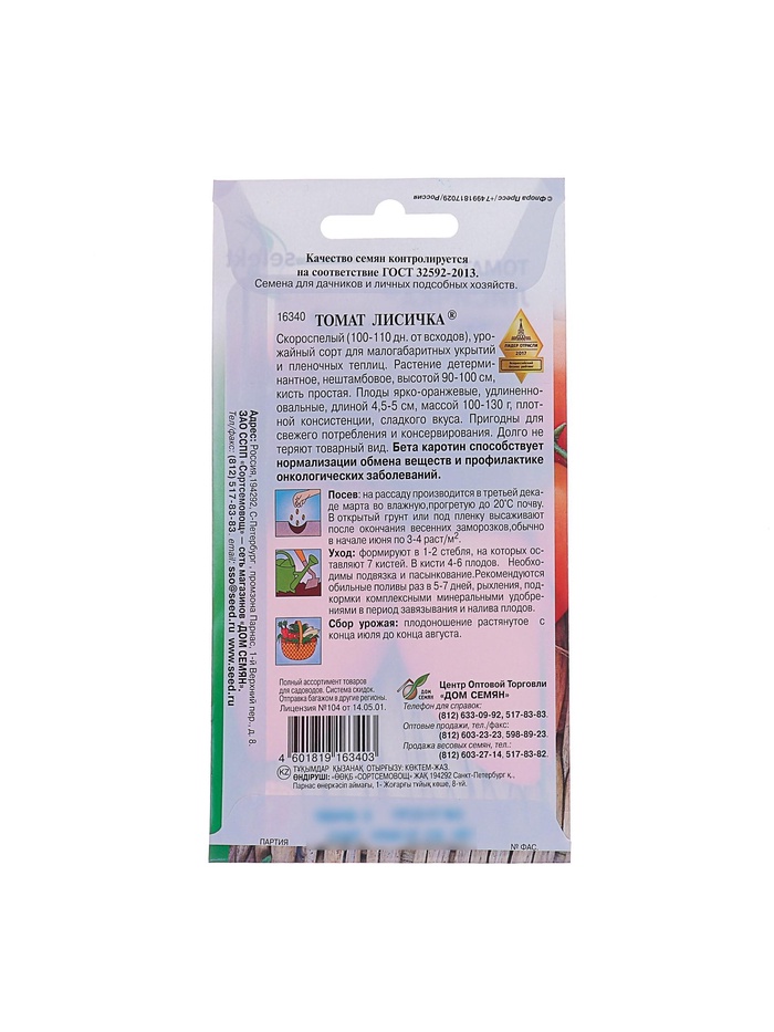 Набор семян Томат "Лисичка" Дом семян, скороспелый, детерминантный, среднерослый, 5 шт.