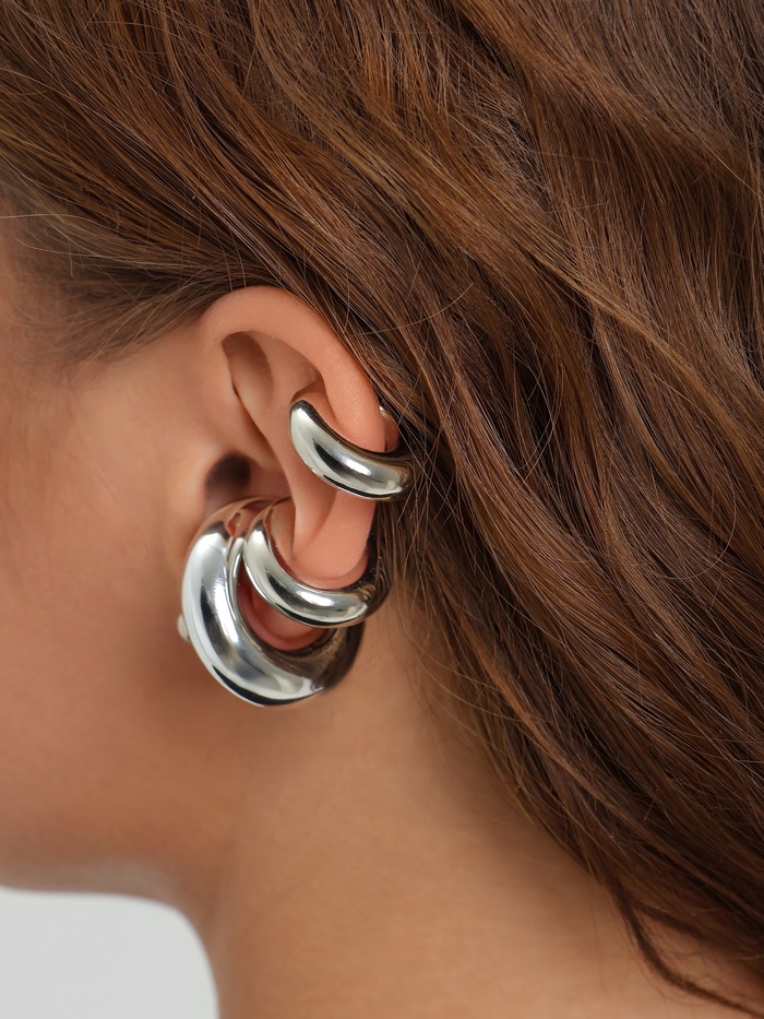 В набор входят четыре элемента, три из которых имеют плавные дуги, что создает невероятный визуальный эффект. Металлический материал, из которого выполнены серьги и каффы, обеспечивает прочность и долговечность, а их стильный дизайн придаст вашему стилю неповторимые нотки. Специальная застёжка позволяет носить эти аксессуары без прокола, что делает их доступными для любой женщины.