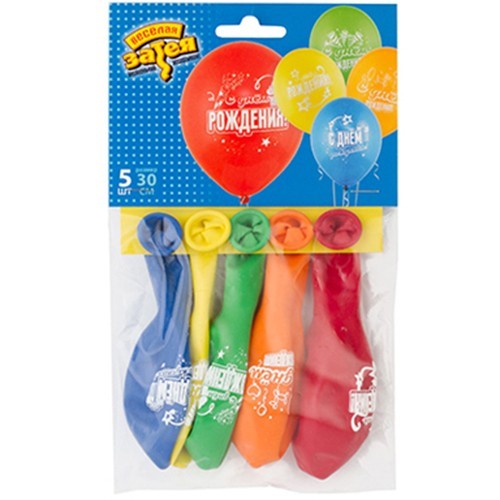Набор шаров рисунком С ДР Звезды 30 см 5 штук 1111-1109