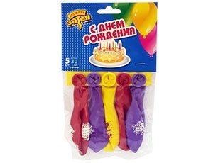 Набор шаров С Днем Рождения 30 см 5шт в уп. 1111-0840 /цена за упак/