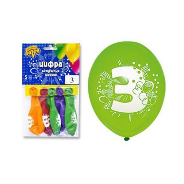Набор шаров с рис. Цифра "3" 30 см 5шт/уп. 1111-0809 /цена за упак/
