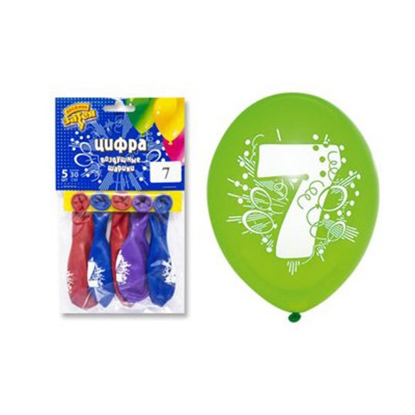Набор шаров с рис. Цифра "7" 30 см 5шт/уп. 1111-0813 /цена за упак/