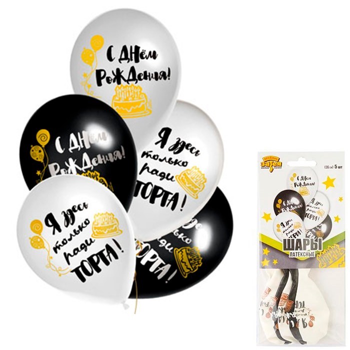 Набор шаров с рисунком С Днем Рождения - Ради Торта 36 см 5 штук 1111-0998