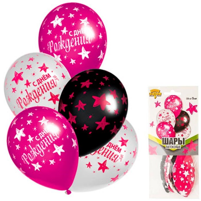 Набор шаров Шелк ДР Звезды розовые 36 см 5 штук 1111-0993