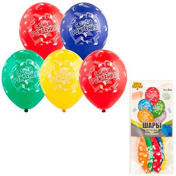 Набор шаров Шелк С ДР Конструктор 36 см 5 штук 1111-1007