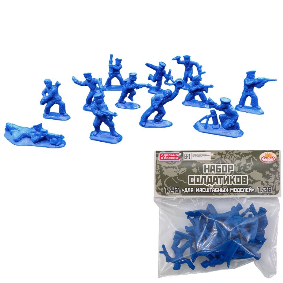 - размеры и пропорции солдатиков подходят к машинкам в масштабе от 1/43 до 1/36