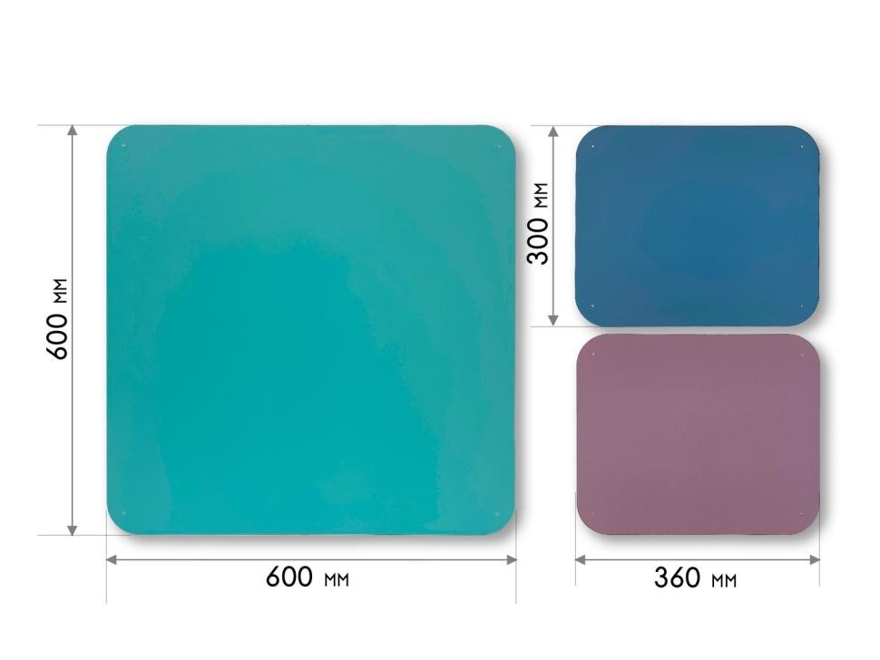 Дополнительные модули бывают однотонные и с тематическими иллюстрациями, подходящими под тематику дидактических панелей. Разнообразие размеров способствует декорированию стен различной конфигурации и масштабов. Параметры варьируются от совсем маленьких модулей 300х300 мм до крупных размеров 600х600 мм.