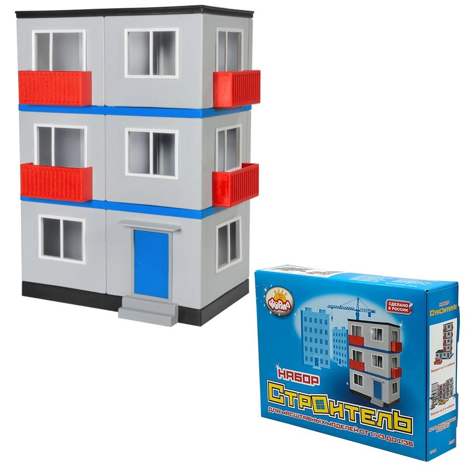 Набор позволяет собрать панельный дом. Подходит для игры масштабными машинками (от 1/43 до 1/36).