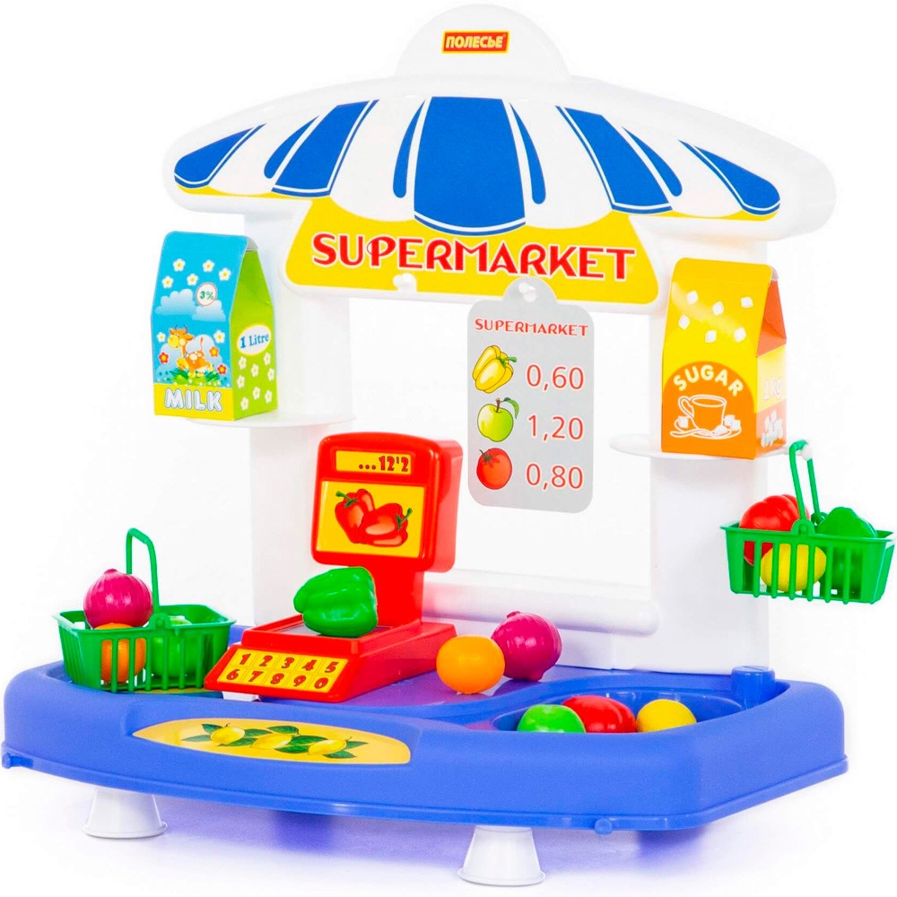 Комплектация: прилавок, весы, корзины для покупок, апельсин -2 шт.,