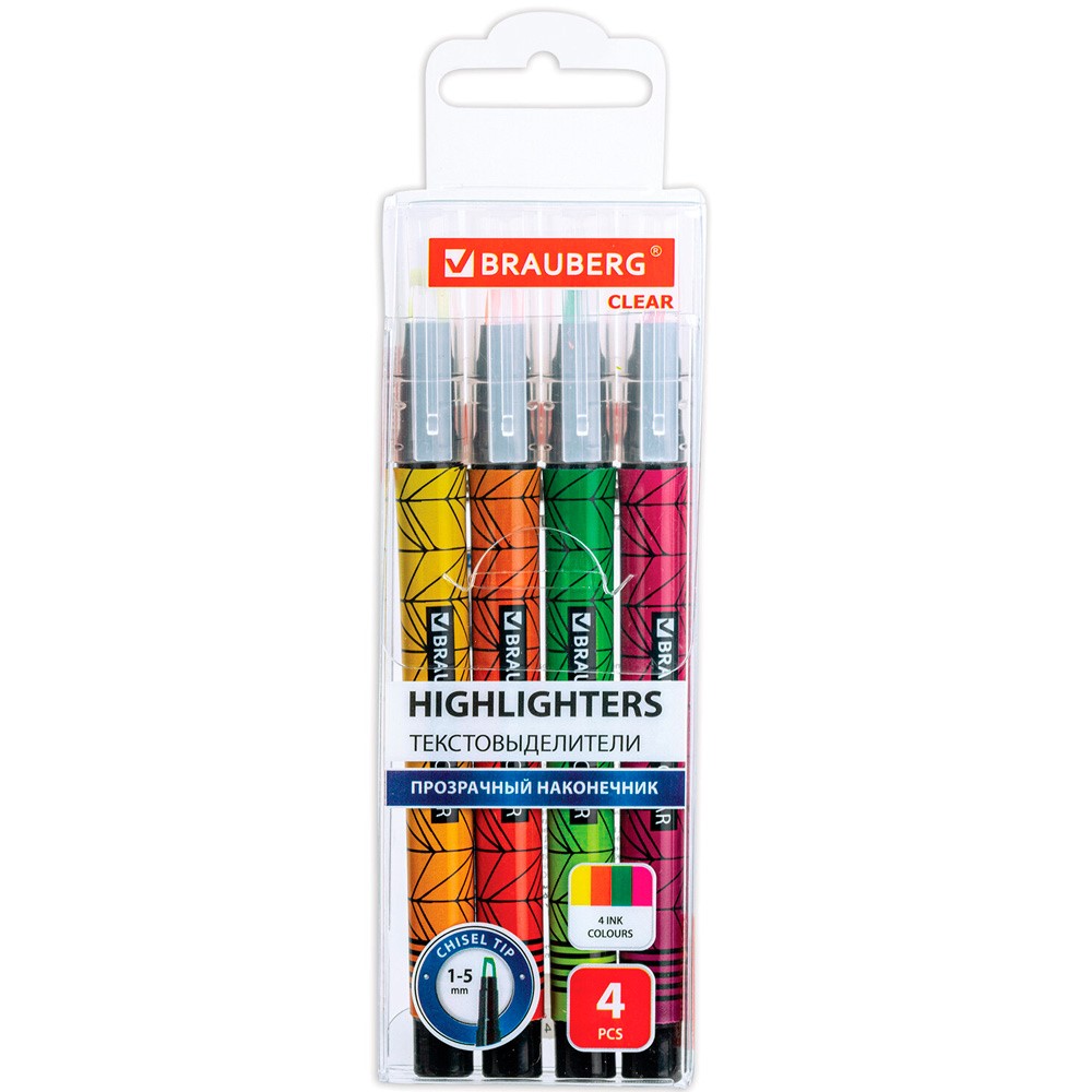 Набор текстовыделителей с прозрачным наконечником 4 цв. BRAUBERG Clear линия 1-5 мм 152426