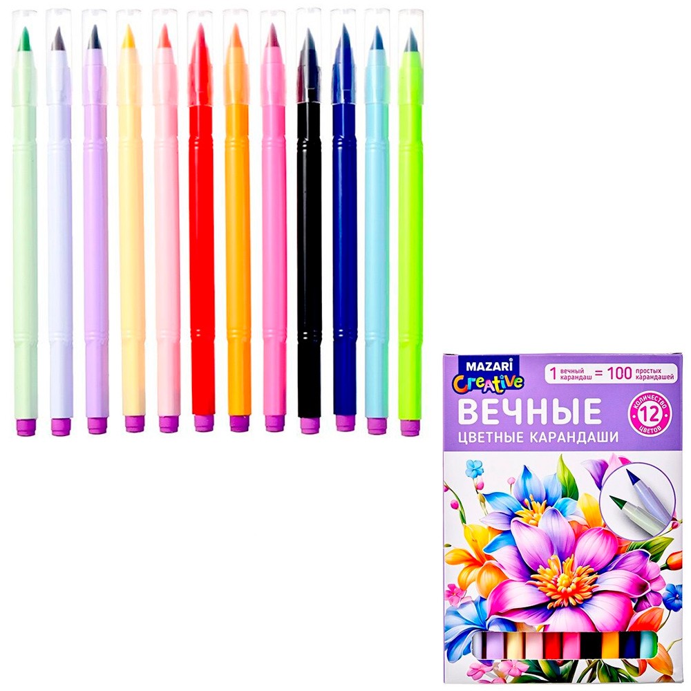 Набор вечных цветных карандашей 12 цв. с ластиком M-7090