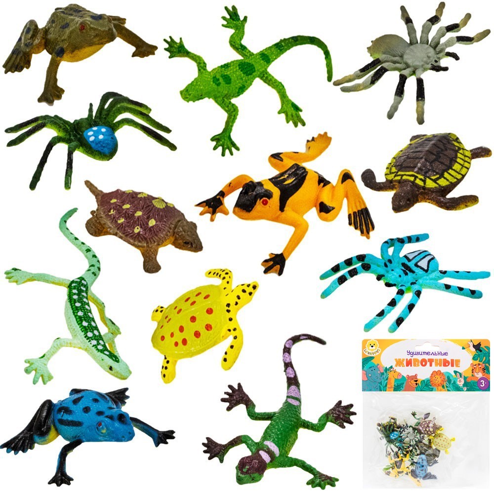 Комплектация: лягушка (6 х 6 см) - 3 шт., паук (5 х 3,5 см) - 3 шт., ящерица (6 х 4 см) - 3 шт., черепаха (2,5 х 4 см) - 3 шт.