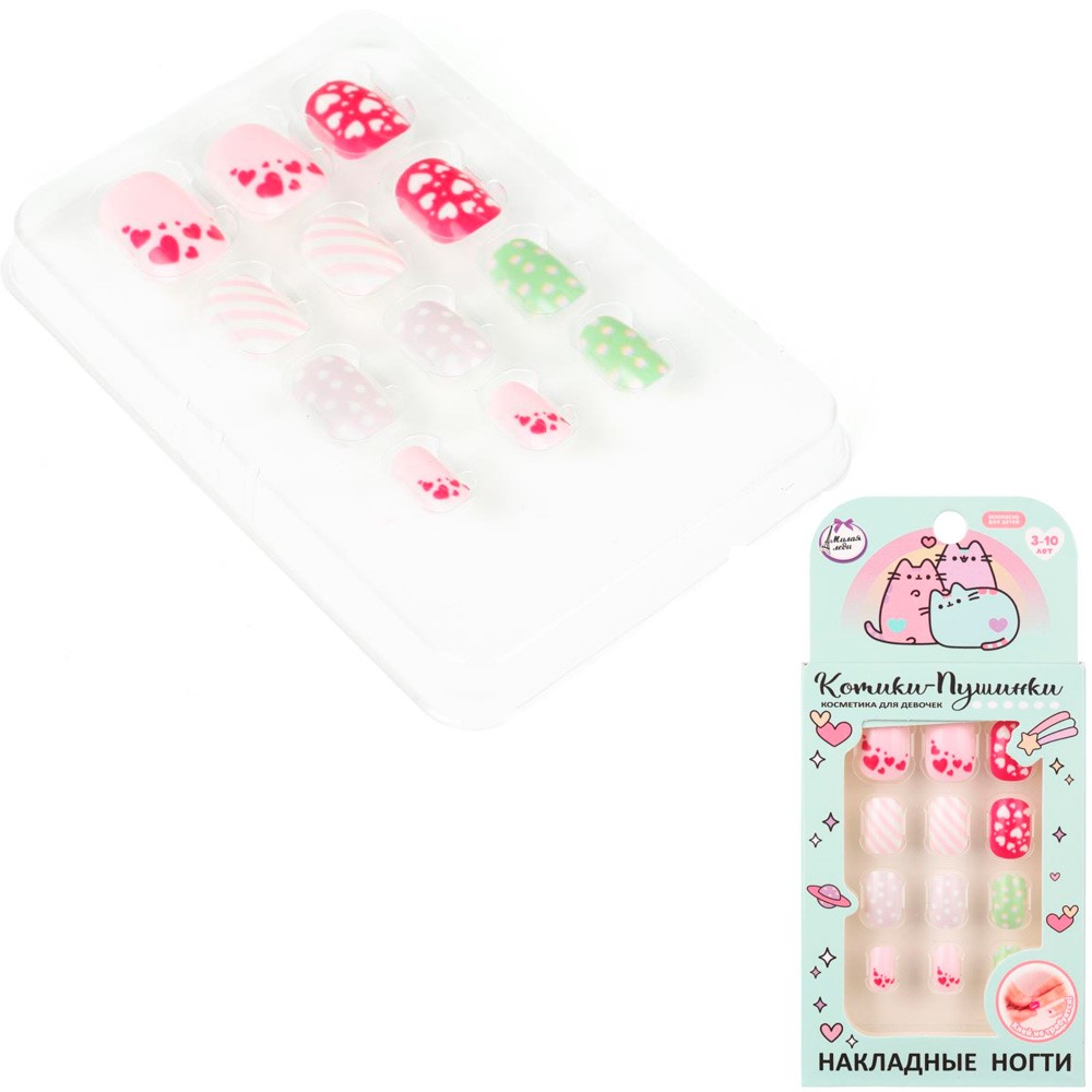 Накладные ногти «Котики-Пушинки» непременно понравятся маленькой моднице.