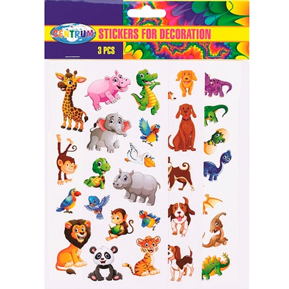 Наклейки декоративные, бумажные,3 шт 15x10мм, 30x15мм, дизайны животных в ассортименте 80731