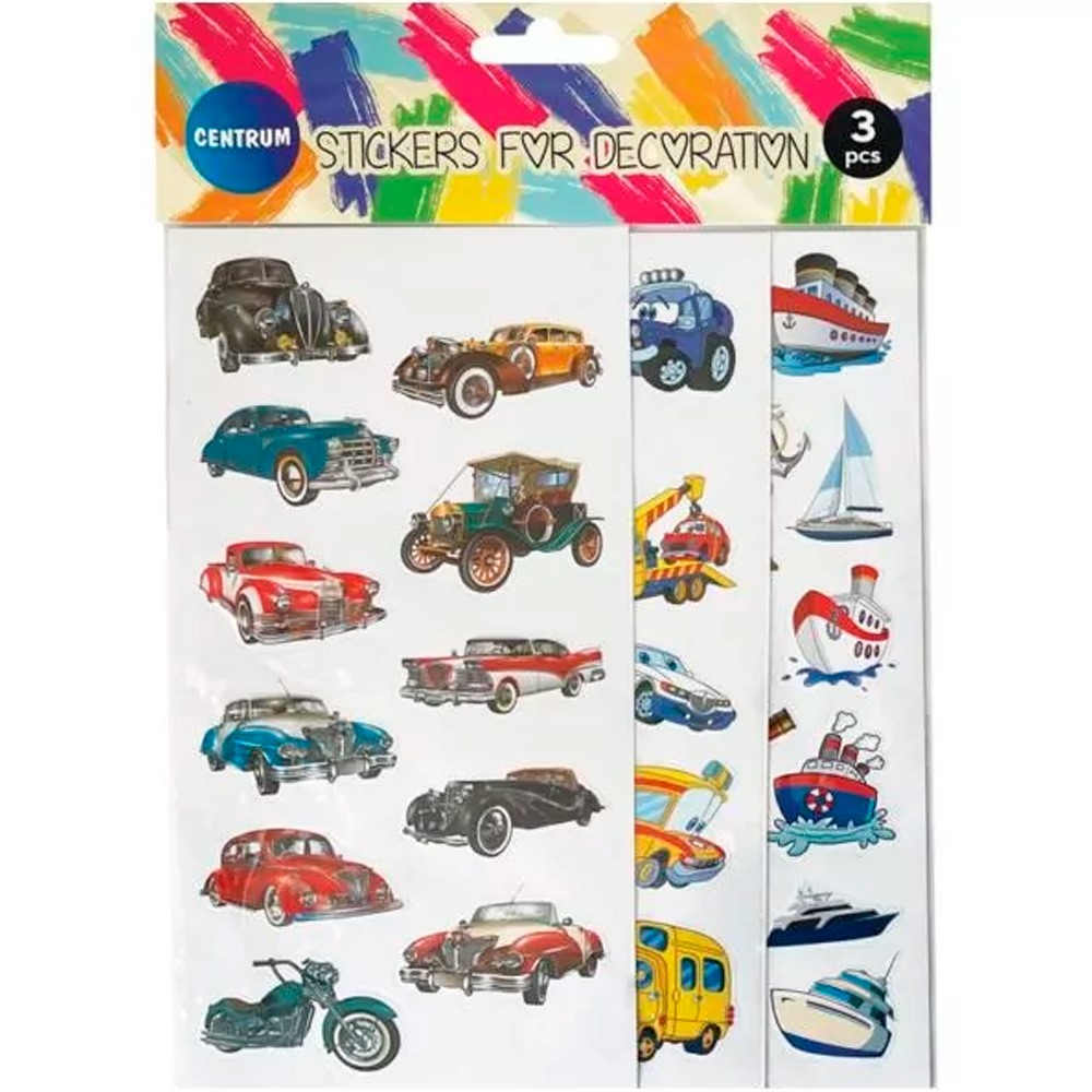 Наклейки декоративные бумажные 3шт 40x15мм, 10x10мм, дизайны машин, космоса 80734