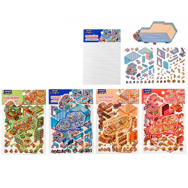 Наклейки румбокс Автобус 13.1*19,6 см, 1 локация, 2 листа с наклейками, 4 дизайна M-20512