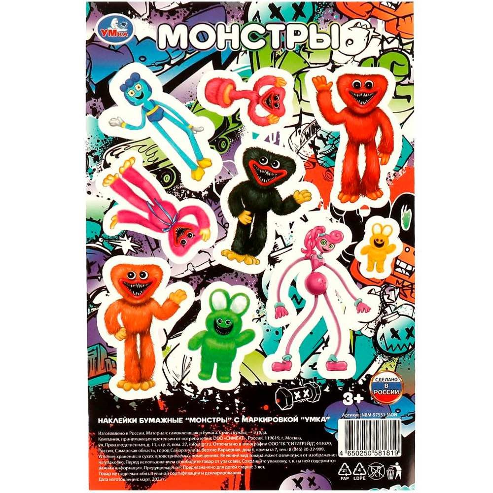 Наклейки Умка 4650250581819 бумажные, 120*180 мм монстры