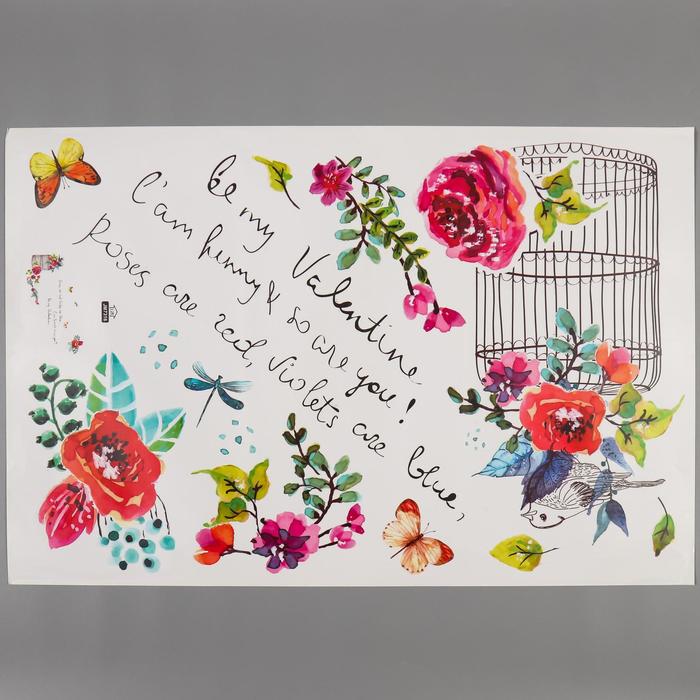 Наклейка интерьерная цветная «Клетка с цветами», 60×90 см