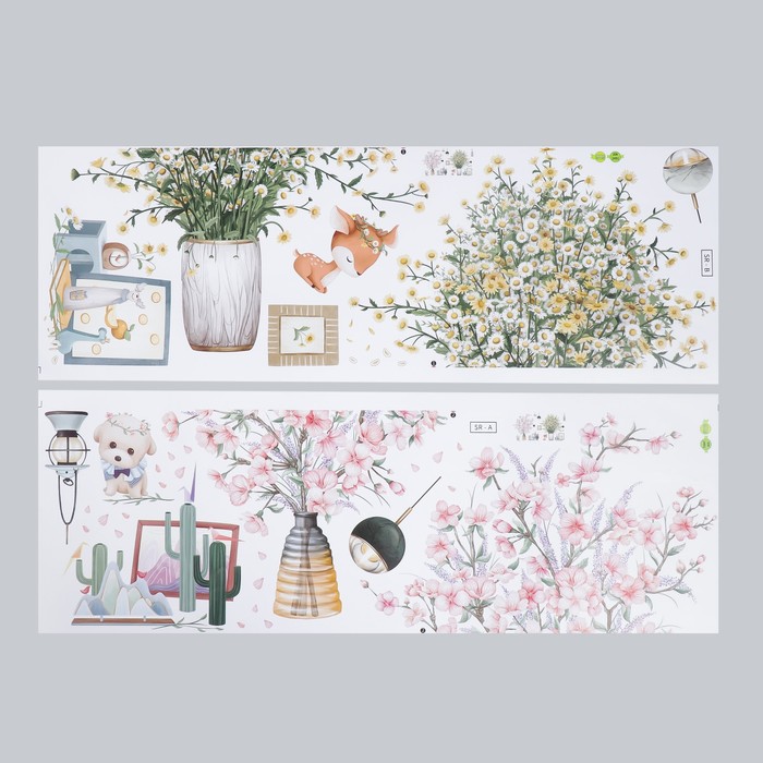 Наклейка интерьерная цветная «Пёсик, олешка и букеты в вазах», набор 2 листа, 30×90 см