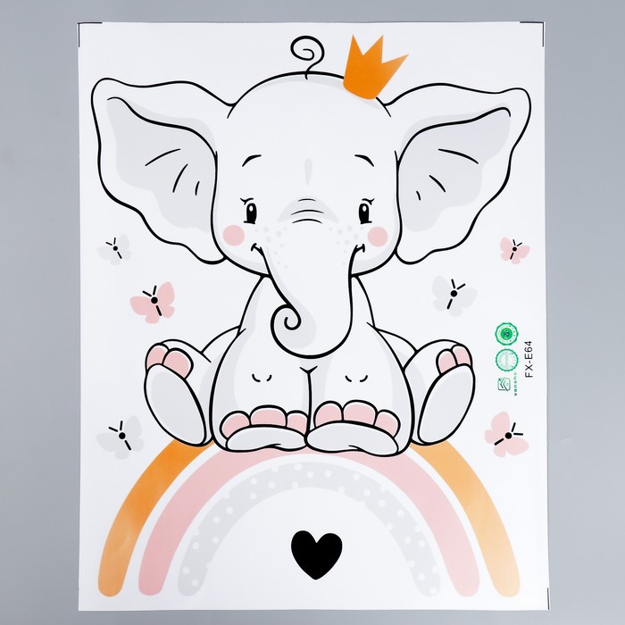 Наклейка интерьерная цветная «Слонёнок в короне на радуге», 39×49 см