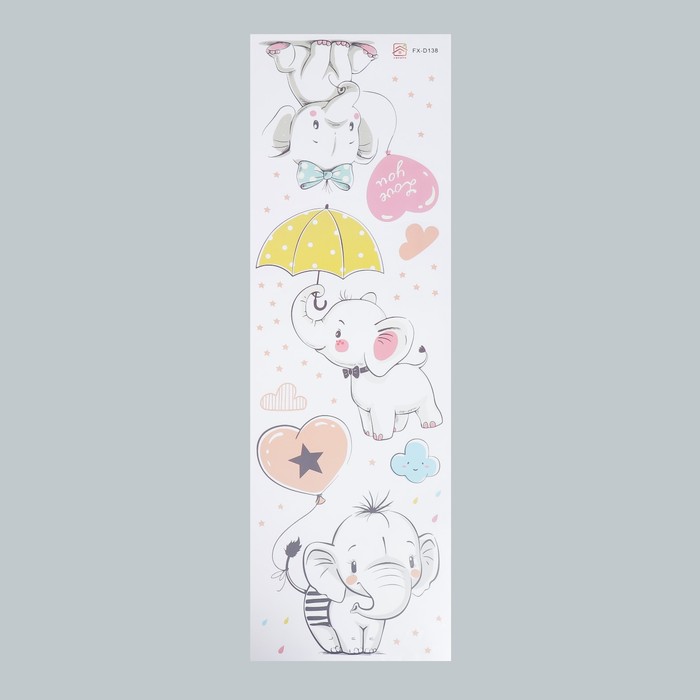 Наклейка интерьерная цветная «Слонята с воздушными шариками», 30×90 см