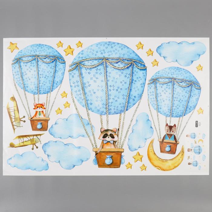 Наклейка интерьерная цветная «Воздушные шарики с зверятами», 60×90 см