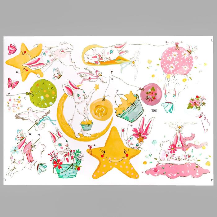 Наклейка интерьерная цветная «Зайки, воздушные шары и звёзды», 60×90 см