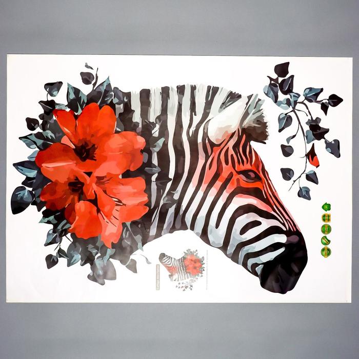 Наклейка интерьерная цветная «Зебра и маки», 50×70 см