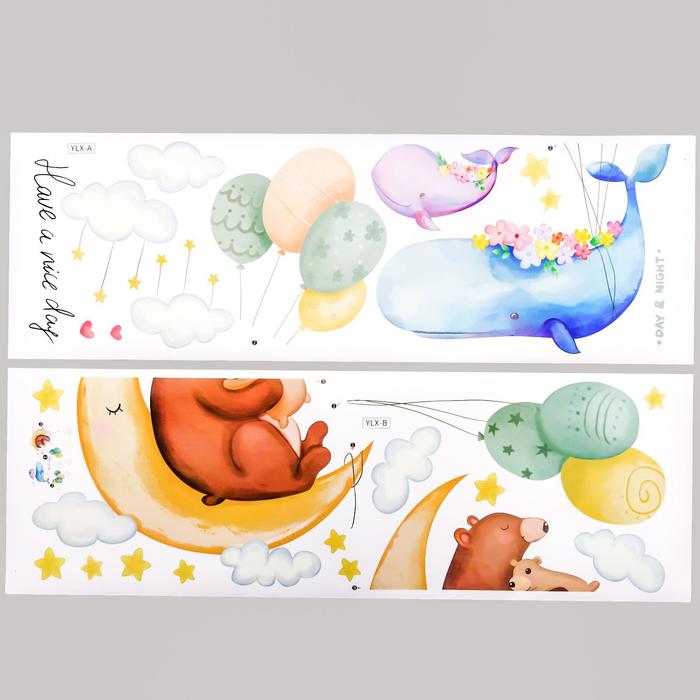 Наклейка интерьерная цветная «Звери и воздушные шарики», 30×90 см, набор 2 листа