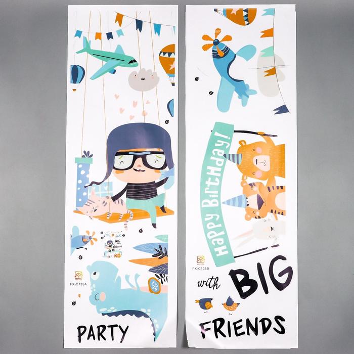 Наклейка пластик интерьерная цветная "Комната мальчишки" 30х90 см набор 2 листа