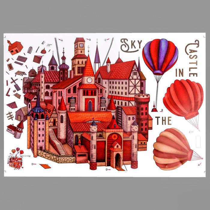 Наклейка пластик интерьерная цветная "Летящий город и воздушные шары" 60х90 см