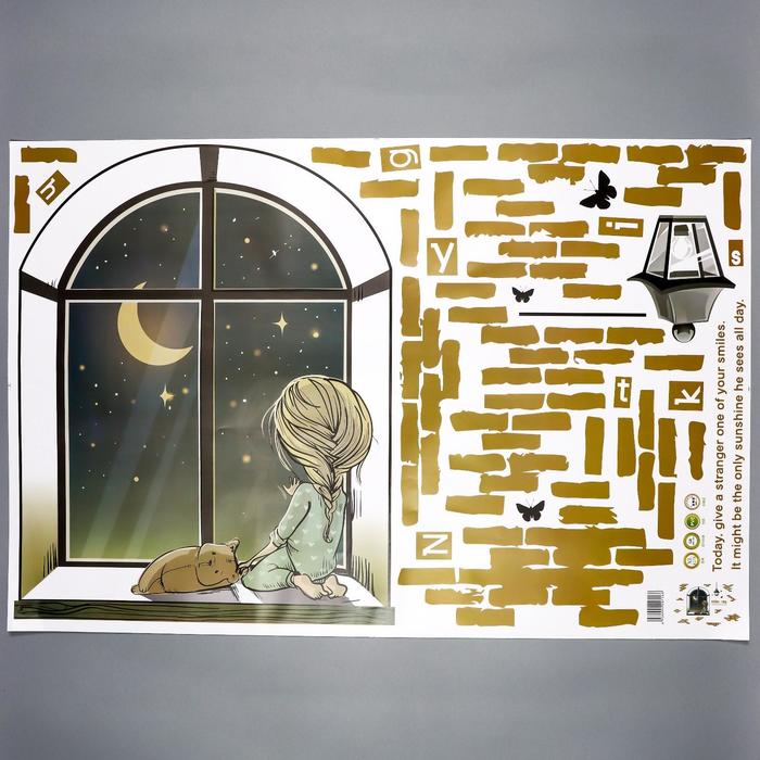 Наклейка пластик интерьерная цветная "Малышка с кошкой на окошке" 60х90 см