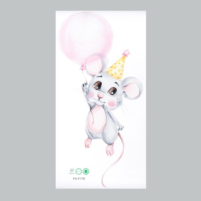 Наклейка пластик интерьерная цветная "Мышонок в воздушным шариком" 29х57 см